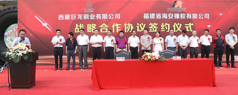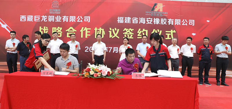 Na manhã de 3 de julho de 2018, a cerimônia de assinatura da aliança de cooperação estratégica Haian Rubber Group Co., Ltd. e Tibet Julong Copper Co., Ltd. foi realizada na sede da HAIAN. A fim de aproveitar plenamente suas respectivas vantagens e alcançar benefício mútuo e crescimento comum, os dois lados assinaram um acordo de cooperação estratégica. A assinatura do contrato marca o estabelecimento de uma parceria estratégica estável e de longo prazo entre as duas partes, estabelecendo uma boa base para o desenvolvimento rápido e sustentável da HAIAN Company.