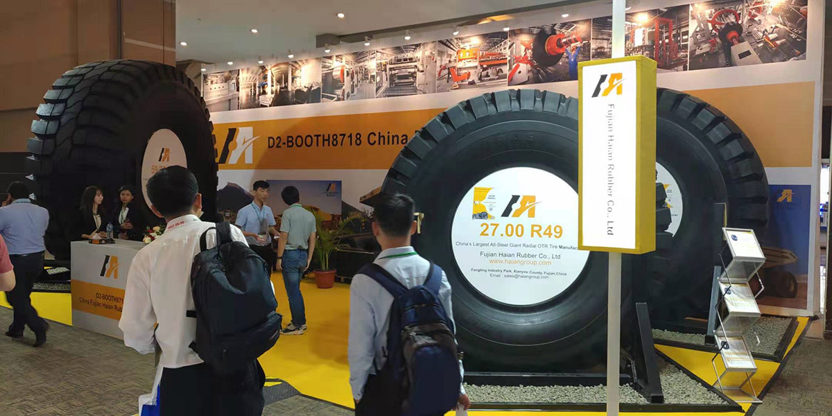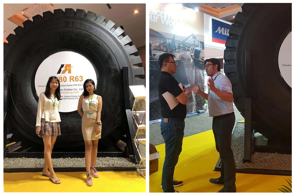 Para mostrar melhor nossos pneus gigantes, a equipe de Haian iniciou a preparação e o design do estande dois meses antes da exposição. 27.00R49,33.00R51 e 59 / 80R63 Os pneus OTR foram exibidos na exposição. O pneu 59 / 80R63 OTR é o pneu gigante OTR de maior tamanho do mundo. Haian tornou-se a empresa de marca nacional "Quarta do Mundo e Primeira da China" com a capacidade de fabricar uma série de pneus radiais gigantes de aço.