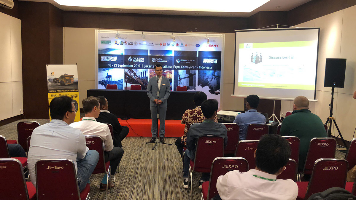 Às 14h00 Em 19 de setembro, Haian realizou um seminário sobre pneus gigantes radiais OTR na sala de conferências ao lado da área de exposição. O seminário atraiu muitos grupos de mineradores indonésios. No ambiente descontraído e feliz, o seminário começou. O conteúdo principal do seminário incluiu: breve introdução de Haian; Tire Date Management System (TDMS); Gerenciamento total de pneus OTR da Haian.
