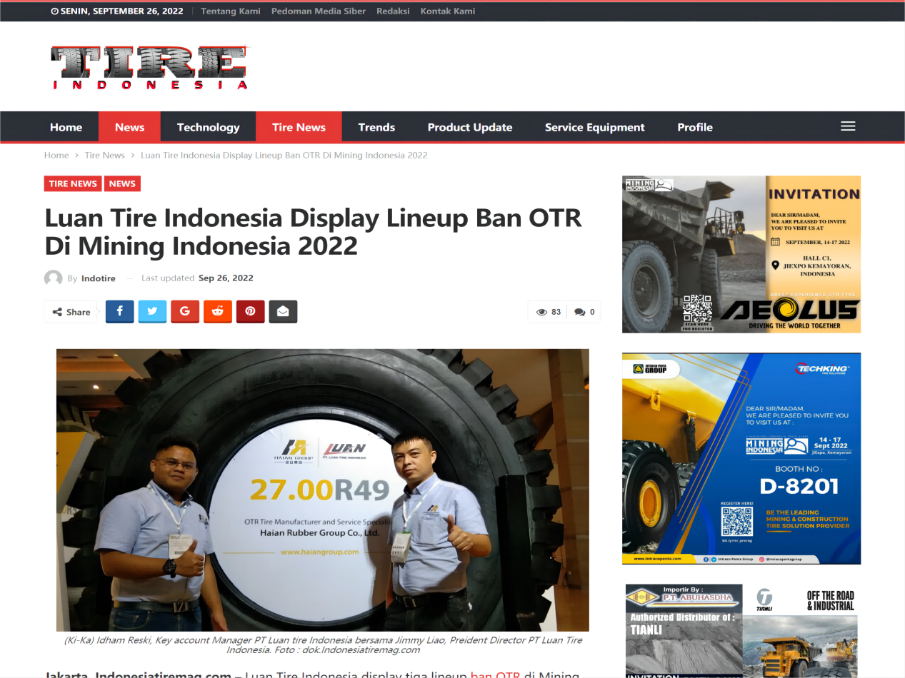 *Notícias relevantes publicadas pela revista Indonesia Tire em seu site oficial. (Luan Tire Indonesia Display Lineup Ban OTR Di Mining Indonesia 2022 (indonesiatiremag.com))